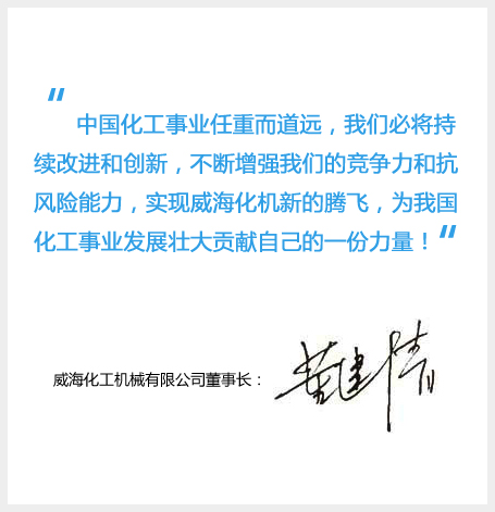 作為國(guó)內(nèi)專業(yè)的攪拌反應(yīng)釜生產(chǎn)基地,我們必將堅(jiān)持自我約束、自我完善,爭(zhēng)做行業(yè)的榜樣和先鋒。中國(guó)化工事業(yè)任重而道遠(yuǎn),我們必將持續(xù)改進(jìn)和創(chuàng)新,不斷增強(qiáng)我們的競(jìng)爭(zhēng)力和抗風(fēng)險(xiǎn)能力,實(shí)現(xiàn)威海化機(jī)新的騰飛,為我國(guó)化工事業(yè)發(fā)展壯大貢獻(xiàn)自己的一份力量!